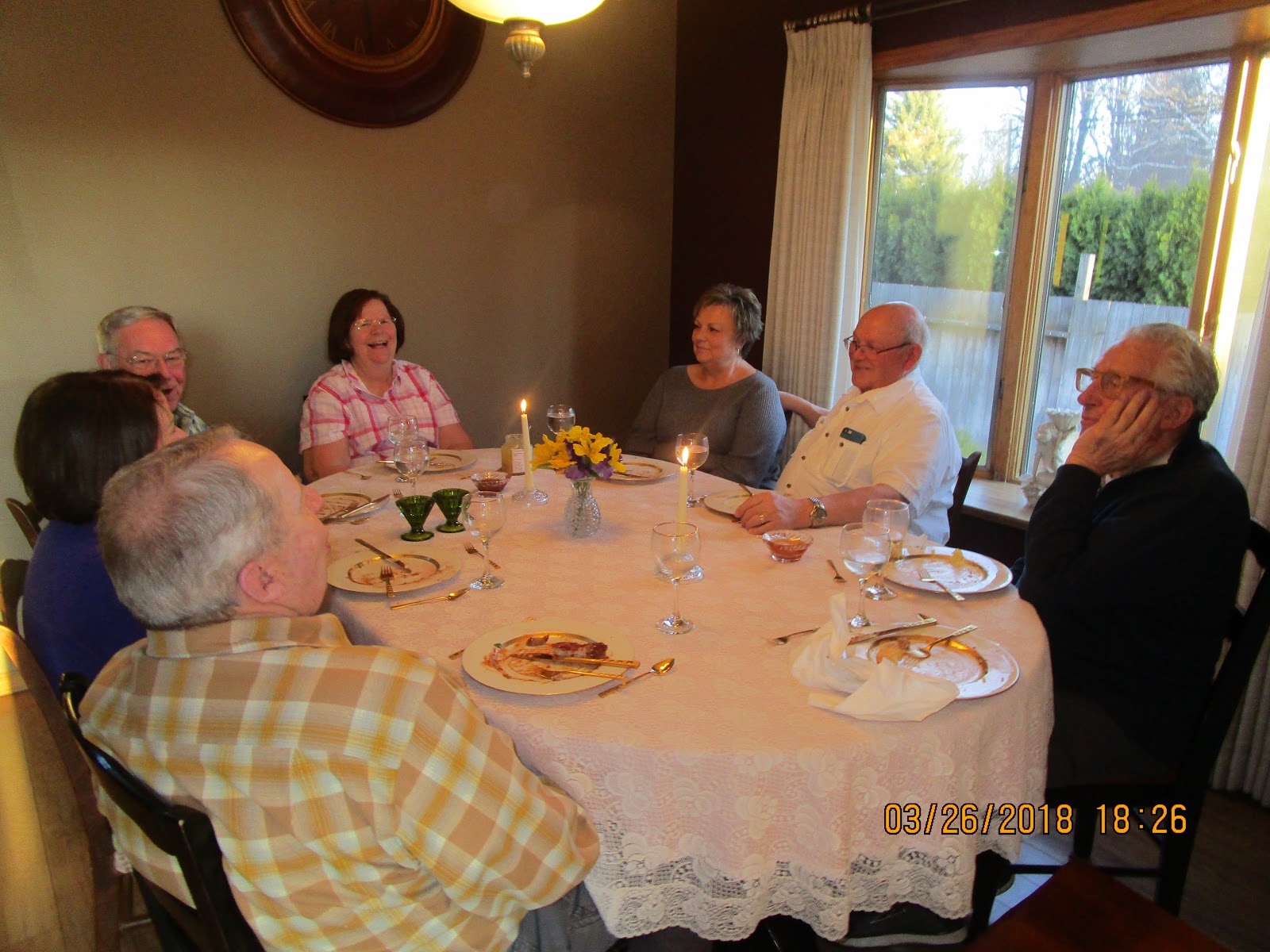 Petersens, Hansens. Dan Black was in the hospital; Fronks were with their daughter Victoria who surprised them coming early from Kentucky. Ormonds have another committment on the fourth Monday.